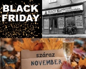 A száraz a november betartását a nálunk egész hónapban tartó Black Friday sem támogatja, az áruházak ital akcióit látva, mert a fekete péntek nálunk már nem egy napos, hanem egy egész hónapos őrület a gyakorlatban.
